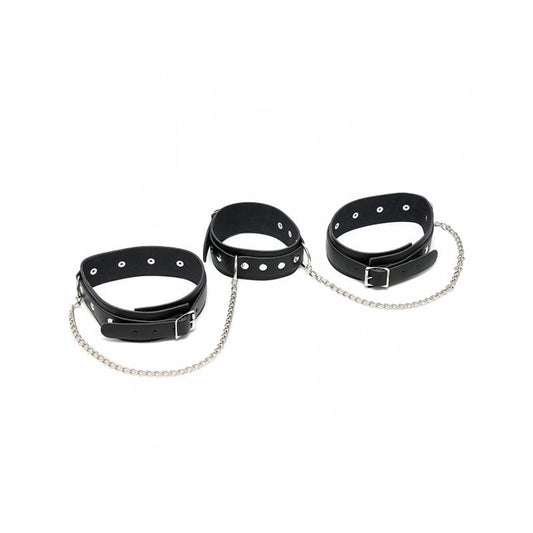 DARKNESS - LEATHER HANDCUFFS FOR FOOT AND HANDS BLACK