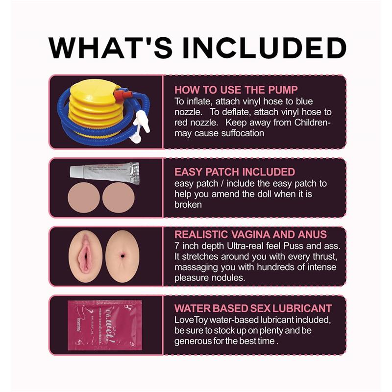 Iščete kakovostne, a cenovno ugodne napihljive lutke? V celoti je izdelana iz obraza igralke Victorie, ima par čutnih silikonskih prsi s pravimi bradavičkami na dotik. To je presenetljivo in drugačno od drugih napihljivih lutk na trgu. Ima realistično vagino in zadnjico, ki sta izdelani iz TPE, materiala z izjemno resničnim občutkom, zaradi katerega so njeni vložki neverjetni. Ne pozabite uporabiti svojega najljubšega lubrikanta na vodni osnovi ter jo očistite pred in po vsaki uporabi.