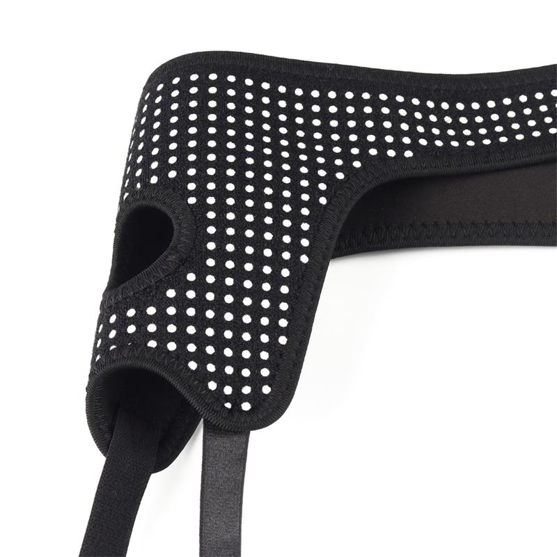 Adjustable harness very easy to use. It is designed to fit perfectly on your body and your curves. It has sides with velcro for a better fit and shiny studs to make you shine.