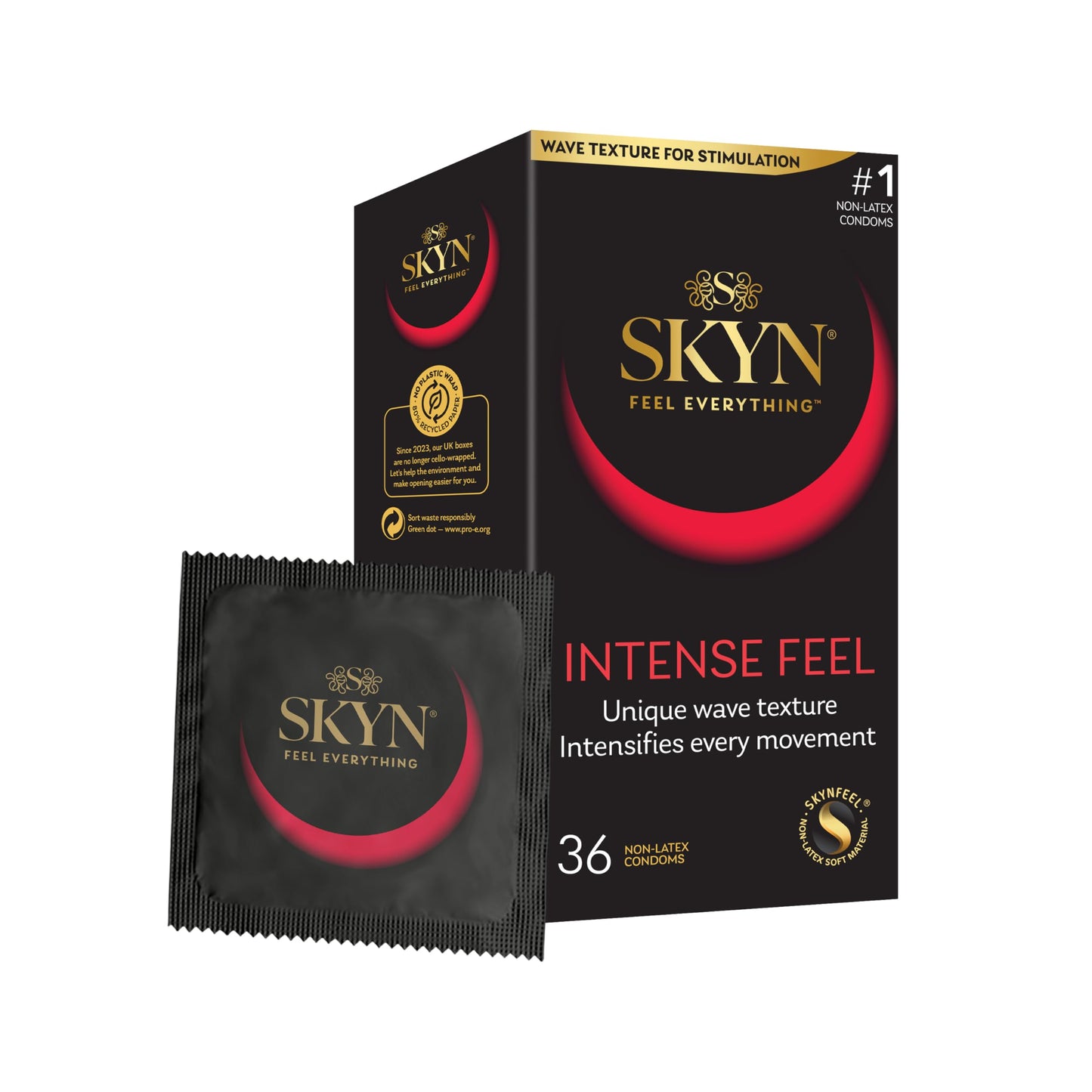 SKYN Intense Feel kondomi so zasnovani za pare, ki želijo še več užitka in intenzivno stimulacijo med spolnim odnosom. Izdelani so iz revolucionarnega materiala SKYNFEEL, ki ne vsebuje lateksa in je izjemno mehak ter udoben. Tako tanek in prijeten, da ga boste komaj občutili. Kondomi so varni tudi za vse z alergijo ali občutljivostjo na lateks.