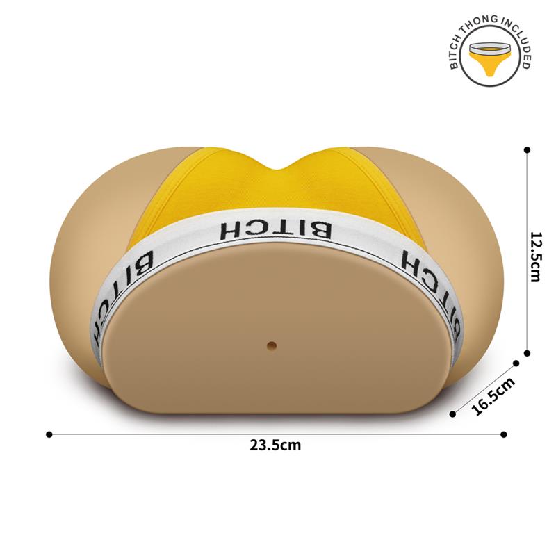 Masturbator z idealno zasnovo. Ta masturbator v obliki zadnjice ima rumene tangice z napisom Bitch. Je lepo oblikovan in oblikovan po modelu za bolj pristno izkušnjo. Vstavljanje v anus je veliko bolj tesno in ima številne krivulje. Lahko jo boste položili ali držali blizu sebe, medtem ko boste raziskovali katerega od dveh zapletenih vstavkov.