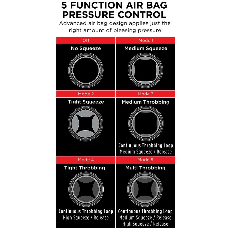 - 5 funkcij nadzora pritiska zračnih vrečk - Napredna zasnova zračnih vrečk uporablja ravno pravšnjo količino prijetnega pritiska. Pritisnite za aktiviranje in pridržite 3 sekunde, da se sprosti.