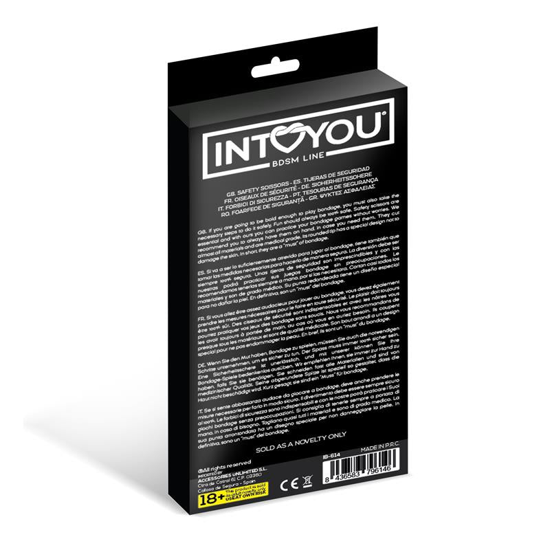 But remember that the most important thing after pleasure is safety, and what better than safety scissors for bondage. They cut almost any material and have been made from medical grade materials. They have a rounded tip and a special design to avoid damage to the skin.