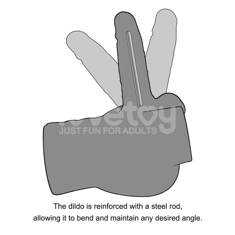 Nastavljivi dildo je ojačan z jekleno palico, ki povečuje njegovo stabilnost in mu omogoča, da se upogne in ohrani poljuben kot. Z mehko in prožno zunanjostjo ter čvrstim jedrom vsak gib zagotavlja intenzivno in zadovoljivo izkušnjo.
