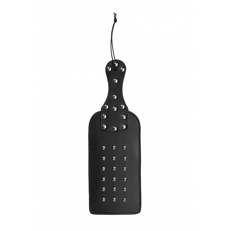Spread your palm so that you receive some tickles and some pricks with this paddle with tacos made with leather. The paddle has studs, an ergonomic handle and a leather wrist loop to give you a perfect grip with every movement. An 18-stop design covers one side while the other is soft and smooth.